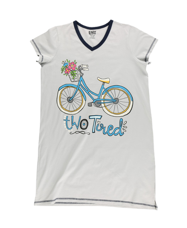You can never be "Two Tired" to slip into this comfortable V-neck nightshirt!