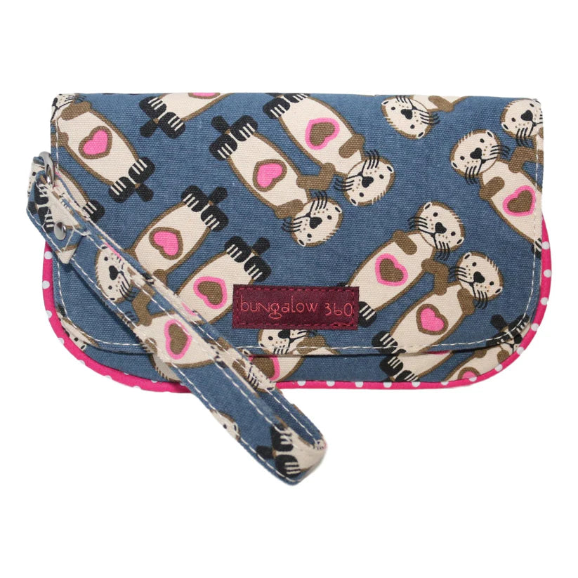 Holds bills, coins, credit cards and a bit more! Interior has coordinating polka dot fabric. Peace sign zipper pull, and a fold over flap with snap closure.