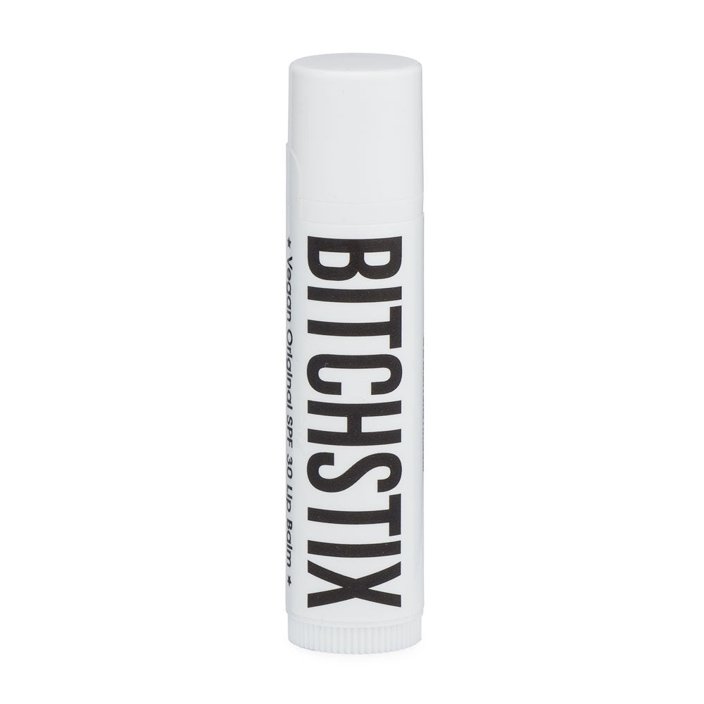 Bitchstix Lip Balm features: SPF 30, Aromatherapy Grade Essential Oils, Non GMO, Palm Oil Free, Petroleum Free, Cruelty Free Product.