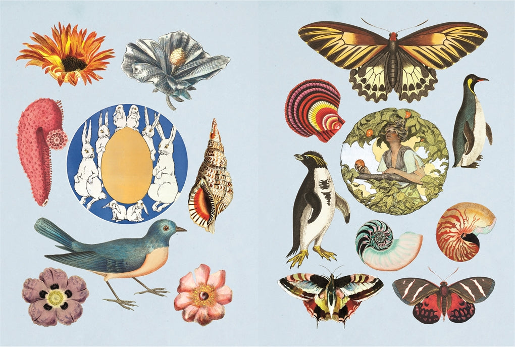 Here, dreamlike collages, inspiring quotations, and vintage ephemera are illuminated in sticker form. This charming, gorgeously curated sticker book is perfect for your coffee table or craft table and makes a unique gift!