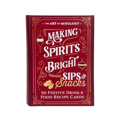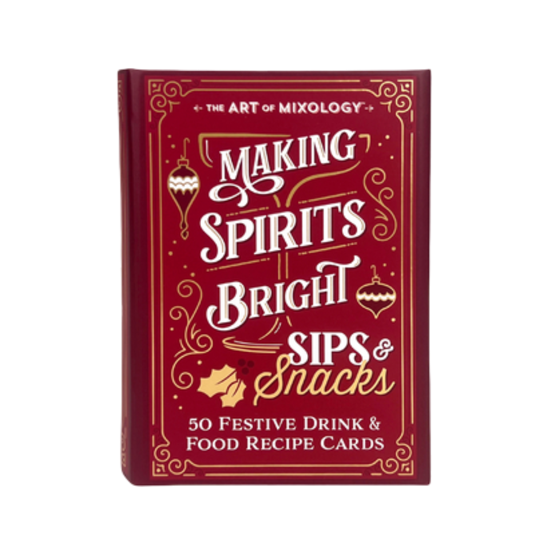 The Art of Mixology Making Spirits Bright Sips & Snacks, a beautifully designed recipe card deck that features 50 festive food and drink recipes.