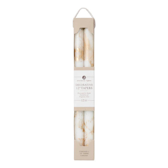 12" Decorative Taper Candle Set/2 - White/Gold