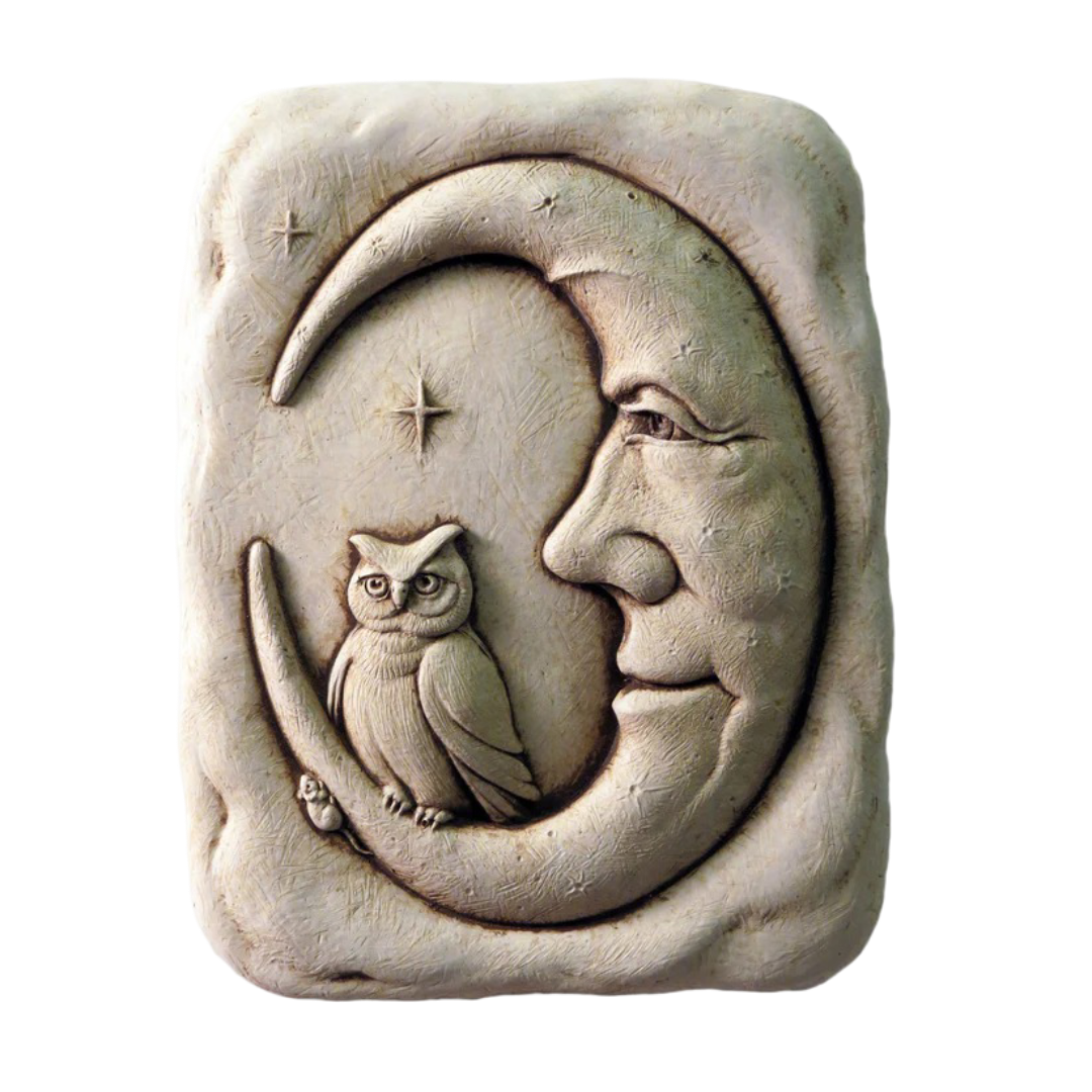 The clever little mouse hiding from the owl is an unexpected treat. While the quarter moon seems quite relaxed, with his owl companion perched so close.