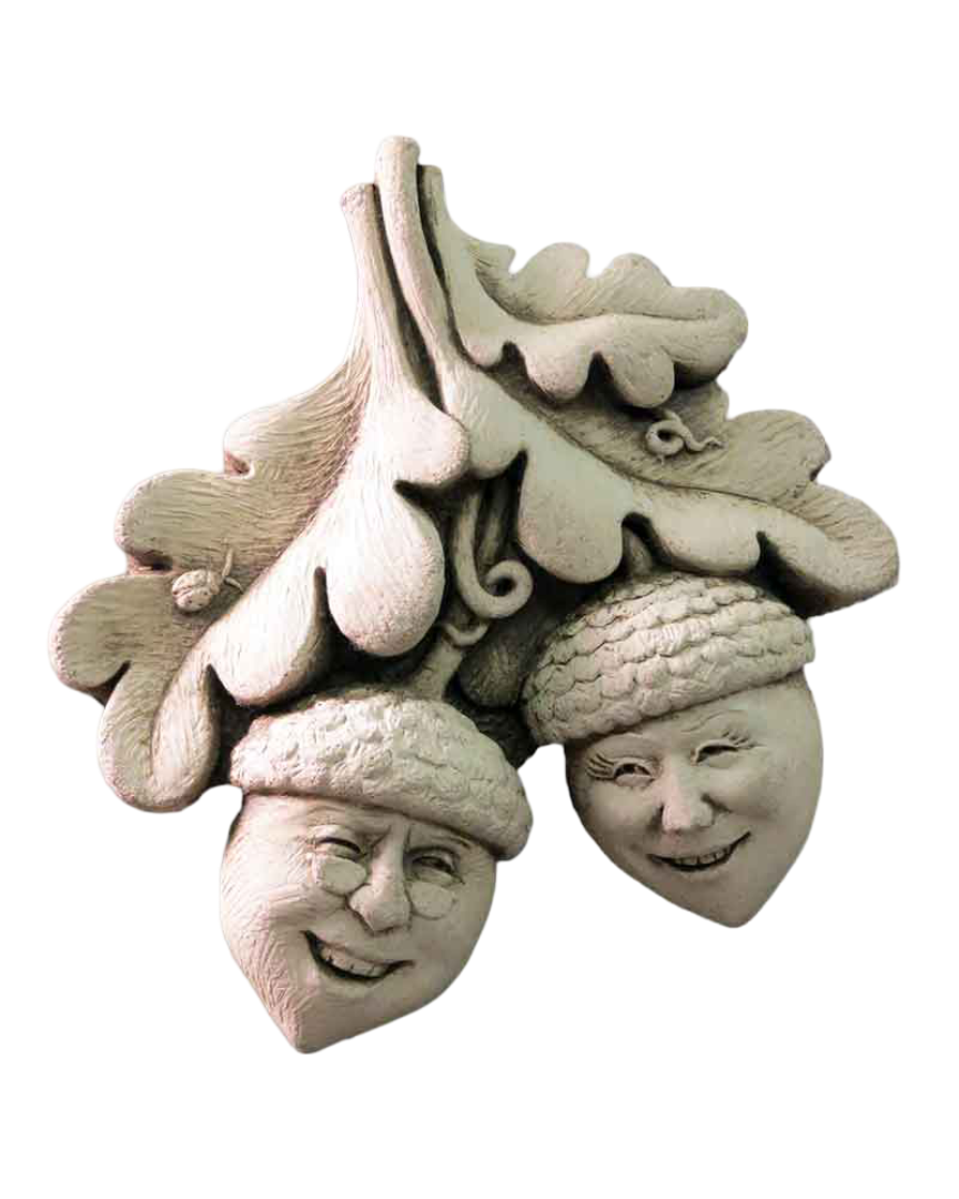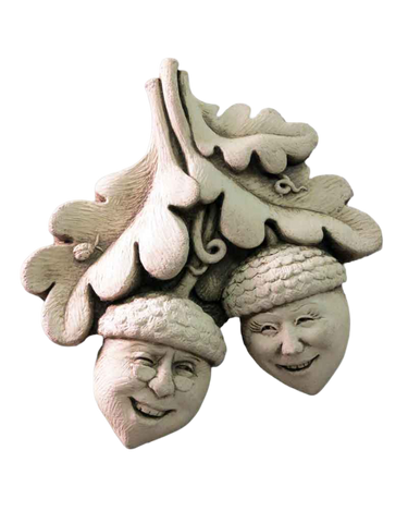 Why not sculpt faces on acorns? After all, oak leaves are a favorite... the graceful, gentle curves and rounded tips of each leaf. Add two plump, smiling acorns, and there you have it, A Nutty Couple.