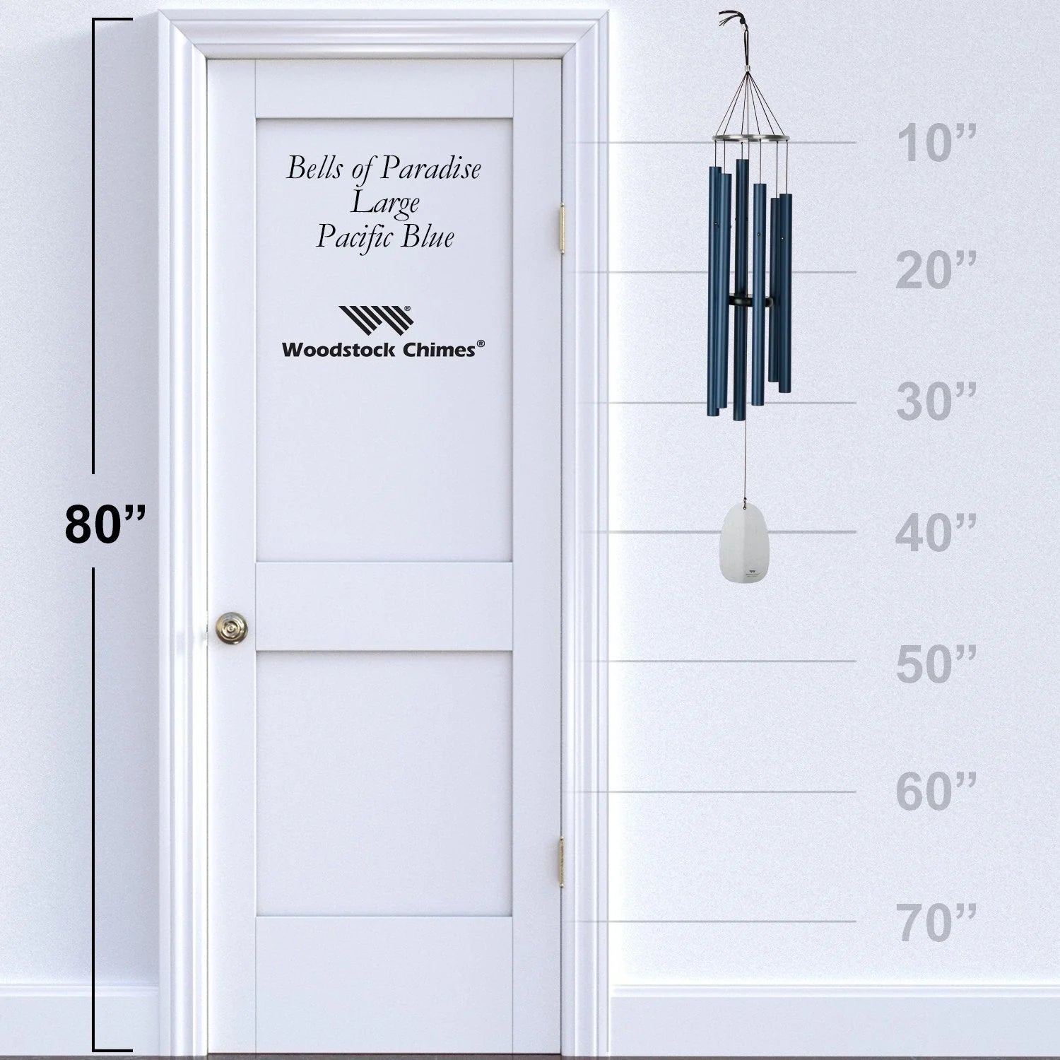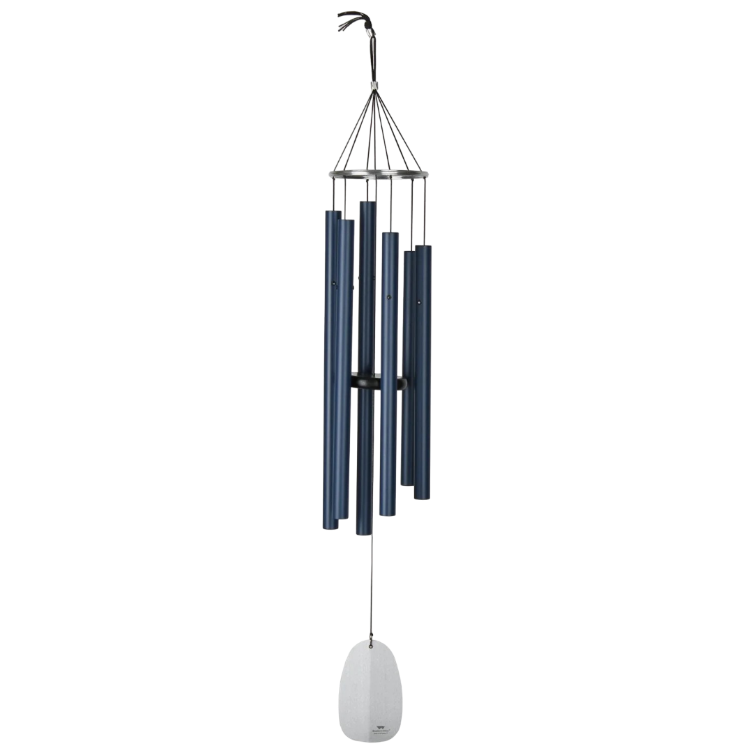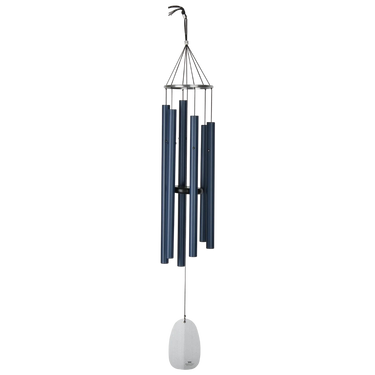 Made with silver aluminum ring and windcatcher, it has six satin blue aluminum tubes, and a styrene clapper.
