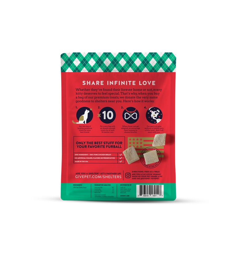 These freeze-dried cat snacks are made with just one ingredient—100% pure chicken breast—making them perfect for even the most finicky cats.