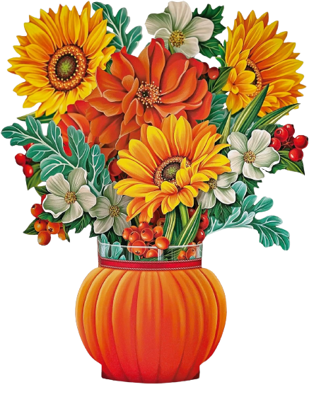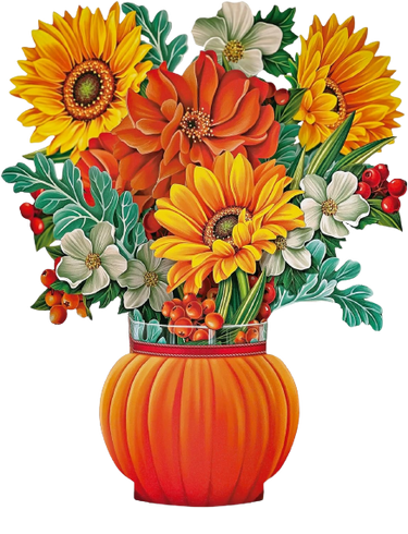 On the chilliest of fall days, warm up beside this abundant Pumpkin Harvest bouquet! A collection of magnolia, sunflowers, hypericum berries, red zinnia, and dusty miller symbolizes the beauty of the changing season, gratitude, and peace.