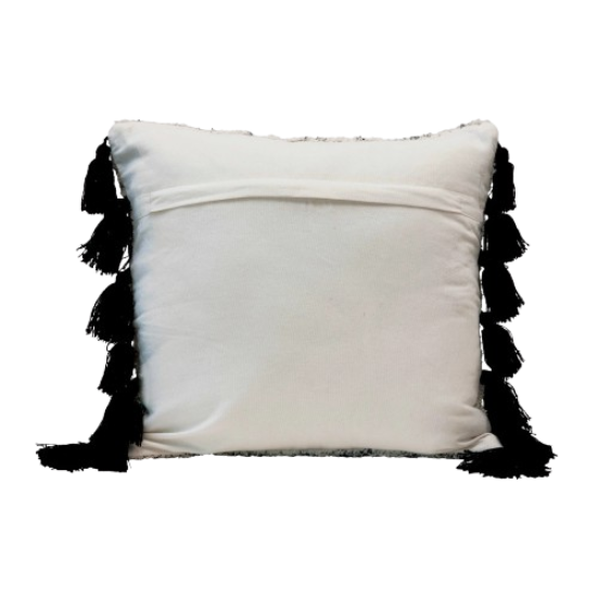 Cotton Printed Tufted Pillow w/ Black Tassels