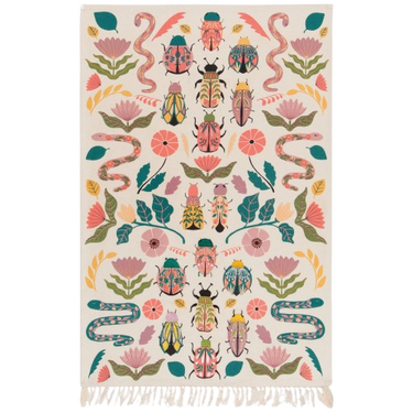 Ensure all your culinary creations come to fortunate fruition by accessorizing your kitchen with this multicolored Amulet Embroidered Dishtowel. Insects, reptiles, flowers and feathers in a gorgeous array of rich hues weave a powerfully protective spell over your cooking efforts, and tasseled trim adds a lighthearted touch.