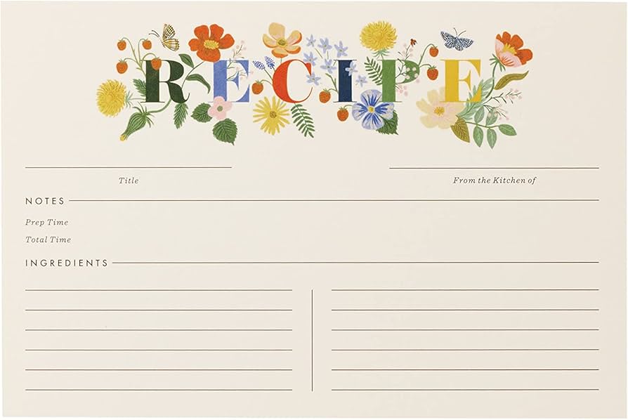 Jot down ingredients and instructions for your favorite dishes with these pretty recipe cards.