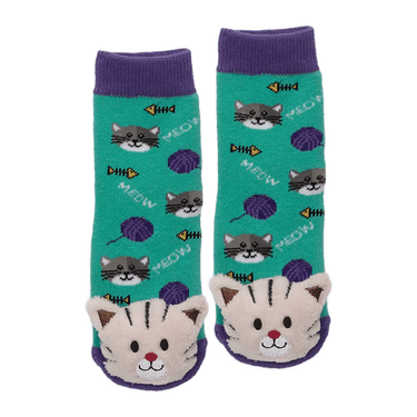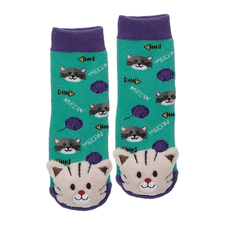 Cute, fun & silly stitched plush charm on each toe along with slip-resistant treads on the soles. Soft cotton blend that is both comfortable and durable.