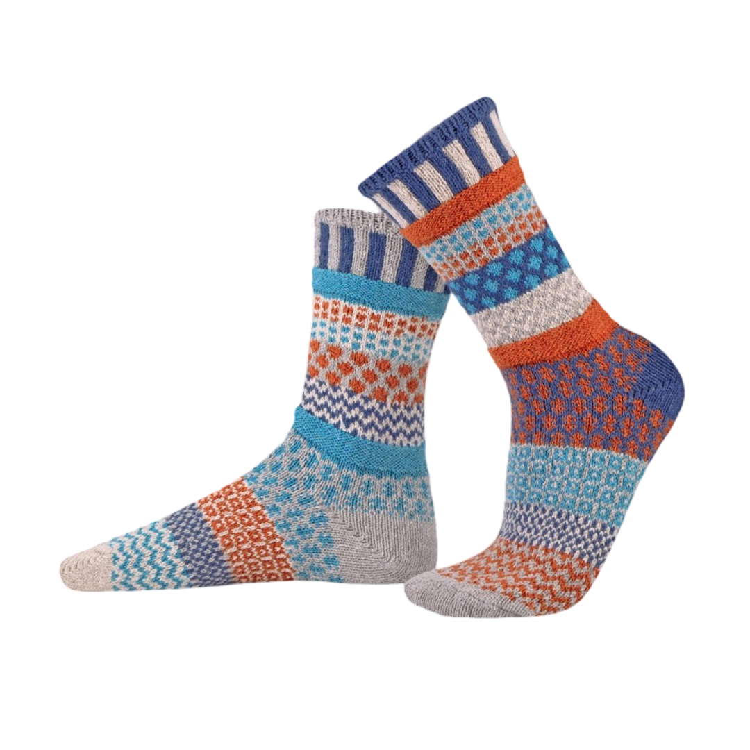 Colors in this sock: aqua, spice, slate, linen, and aluminum.