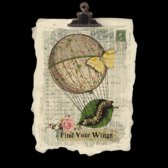Collage designed and printed in the studio of Land of Elsewhere on handmade seeded natural tree free fiber paper.