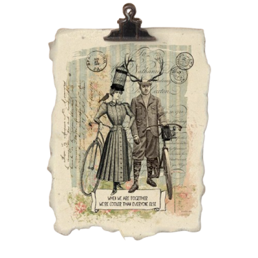 Collage designed and printed in the studio of Land of Elsewhere on handmade seeded natural tree free fiber paper.