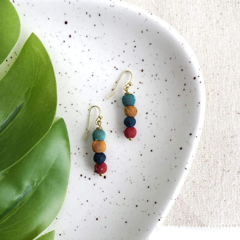 Simple and understated, these earrings are a true wardrobe staple. Four repurposed Kantha beads are lined up for this delicate style.