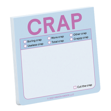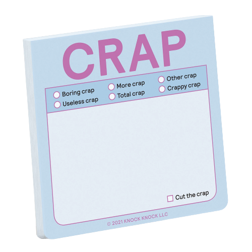 Use this colorful, witty sticky pad to make crap notes, crap lists, crap to-do’s, or crap love notes.