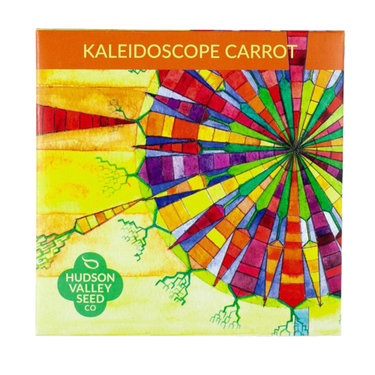 Seeds: A crunchy rainbow-hued mix of carrots. Trying to trace the origins of the modern orange carrot is like looking through a kaleidoscope. Shapes and colors reflect and refract, and the more time you spend looking, the more they change. The carrot's geo-genetic story starts with a white and wild bitter root, touched by the sweet yellow sun of the Middle East, growing under purple mountains and bright vermillion sunsets, its seeds passed by thousands of hands of many hues. This prismatic mix reflects the colorful evolution of the carrot.