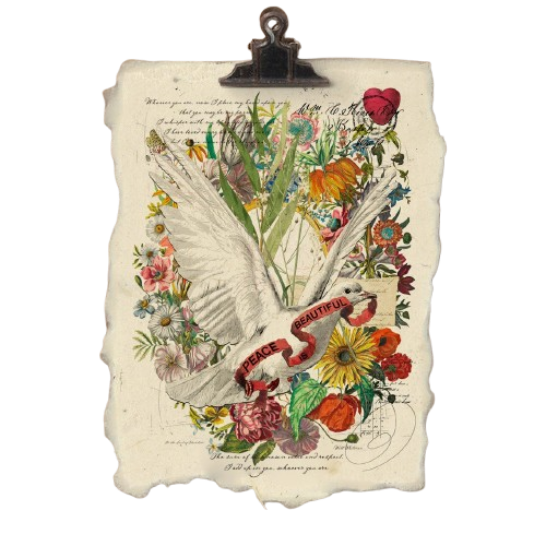 Collage designed and printed in the studio of Land of Elsewhere on handmade seeded natural tree free fiber paper.
